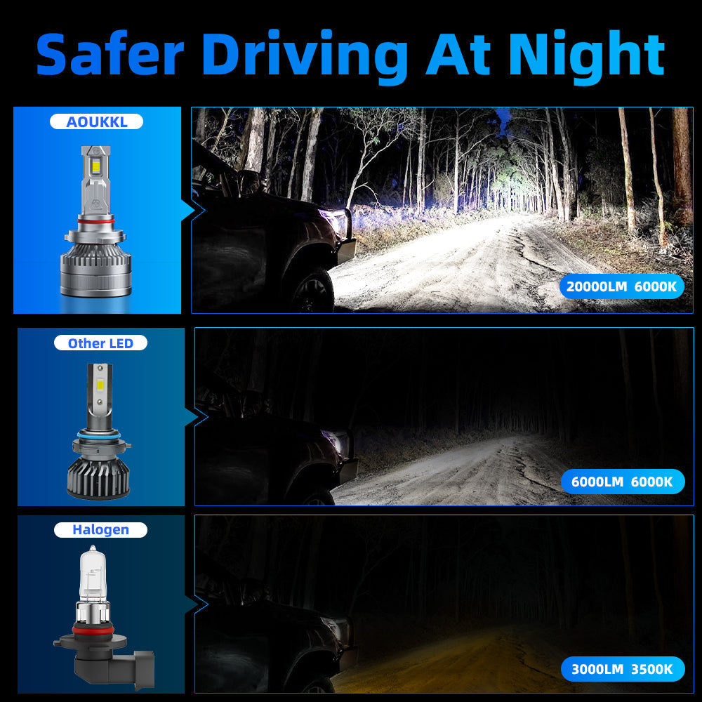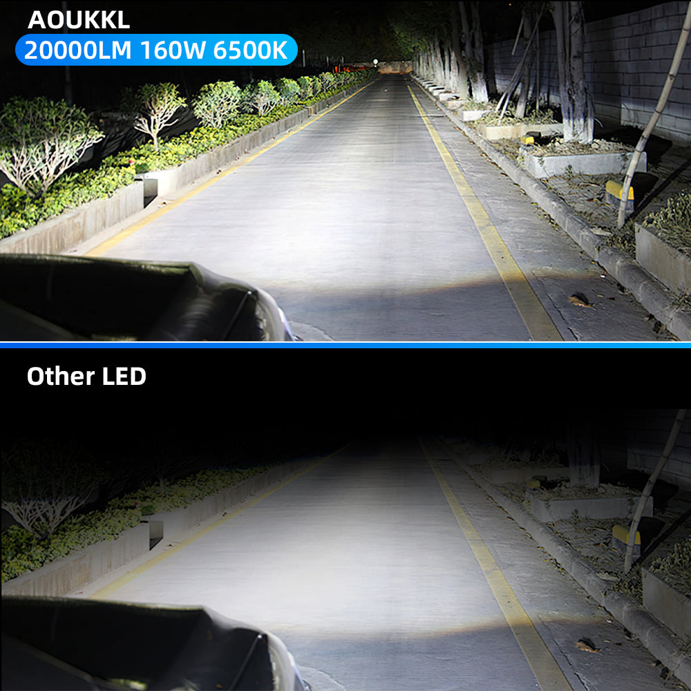 See Farther, Stay Safer – AOUKKL’s 20,000-lumen LED chips (6500K pure white) illuminate 2-5X farther than halogens, spotting hazards like deer or debris earlier.