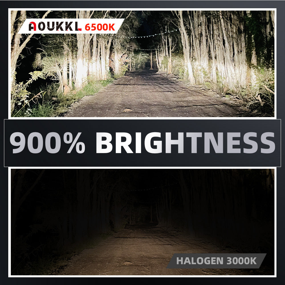 See Farther, Stay Safer – AOUKKL’s 10,000-lumen LED chips (6500K pure white) illuminate 2-5X farther than halogens, spotting hazards like deer or debris earlier.