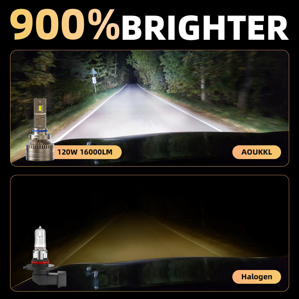 See Farther, Stay Safer – AOUKKL’s 16,000-lumen LED chips (6500K pure white) illuminate 2-5X farther than halogens, spotting hazards like deer or debris earlier.
