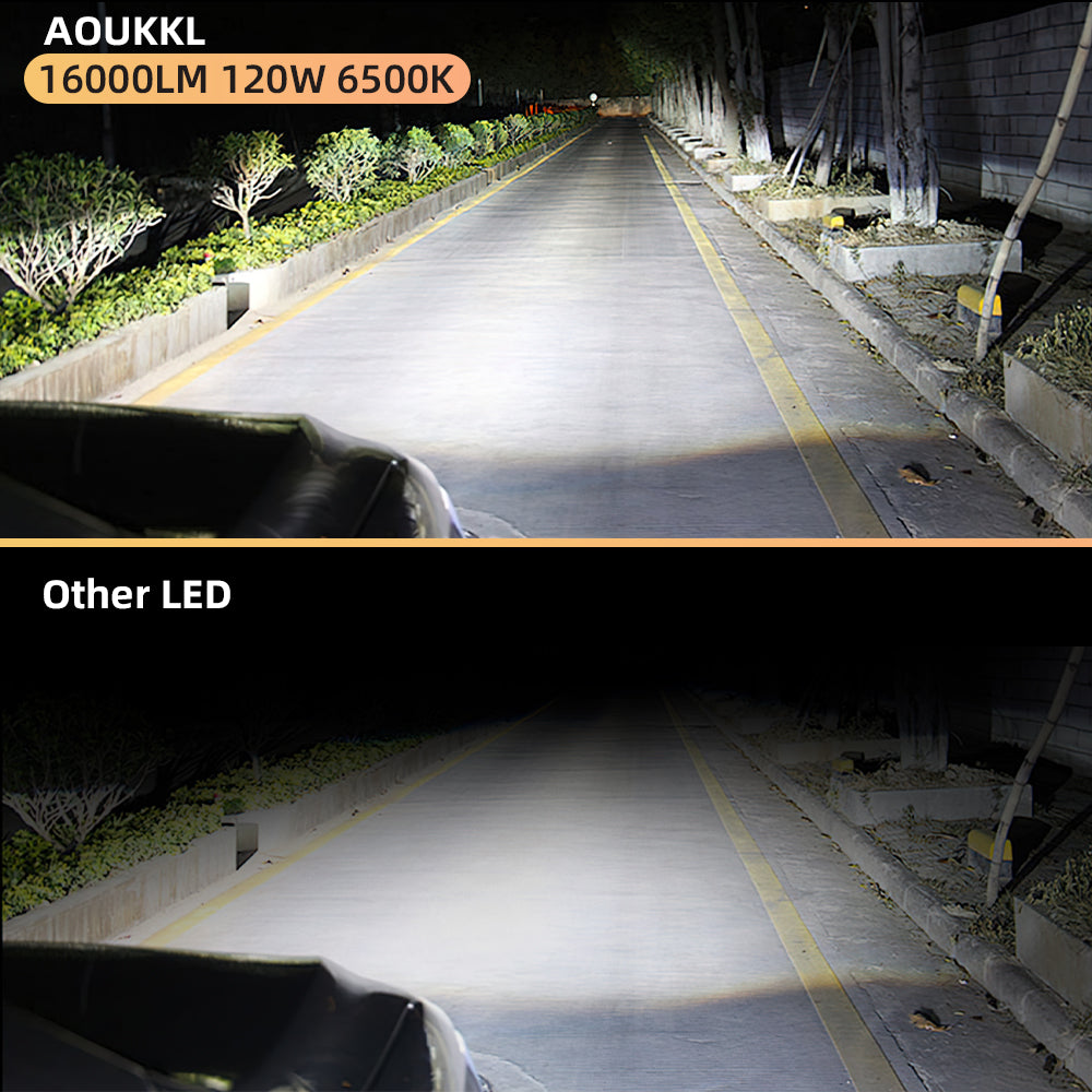 See Farther, Stay Safer – AOUKKL’s 16,000-lumen LED chips (6500K pure white) illuminate 2-5X farther than halogens, spotting hazards like deer or debris earlier.