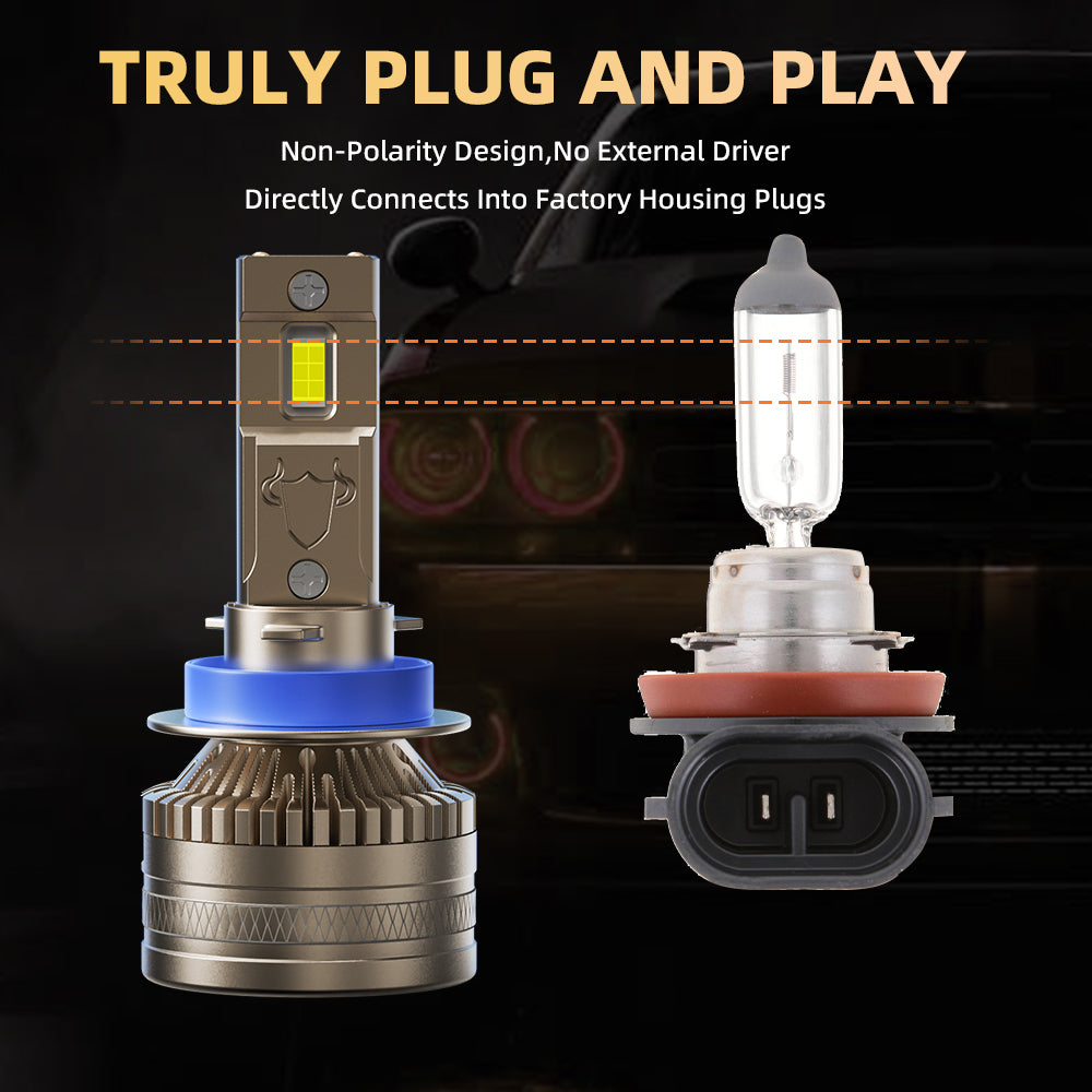 3rd-gen ultra-bright chips deliver max 5x the luminosity of OEM lights. Silent 15,000RPM cooling blades provide top-tier heat dissipation. Full-body die-cast construction ensures superior durability and aesthetics.