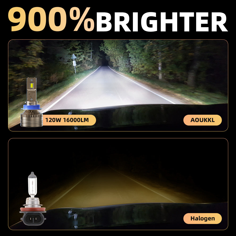See Farther, Stay Safer – AOUKKL’s 16,000-lumen LED chips (6500K pure white) illuminate 2-5X farther than halogens, spotting hazards like deer or debris earlier.