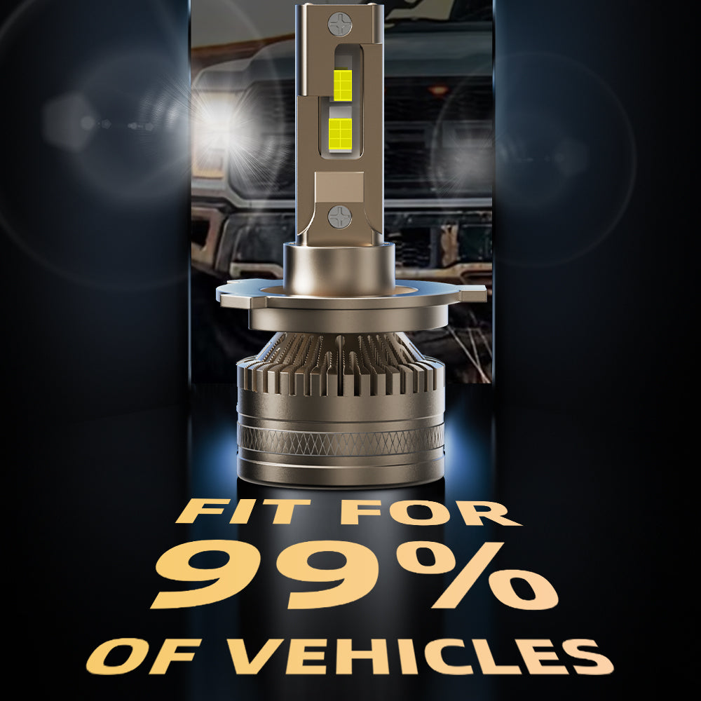 3rd-gen ultra-bright chips deliver max 5x the luminosity of OEM lights. Silent 15,000RPM cooling blades provide top-tier heat dissipation. Full-body die-cast construction ensures superior durability and aesthetics.