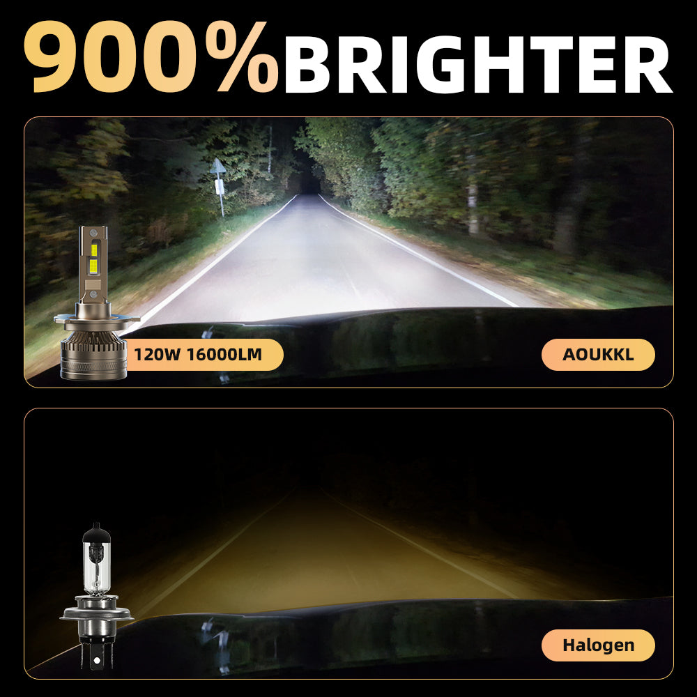 See Farther, Stay Safer – AOUKKL’s 16,000-lumen LED chips (6500K pure white) illuminate 2-5X farther than halogens, spotting hazards like deer or debris earlier.