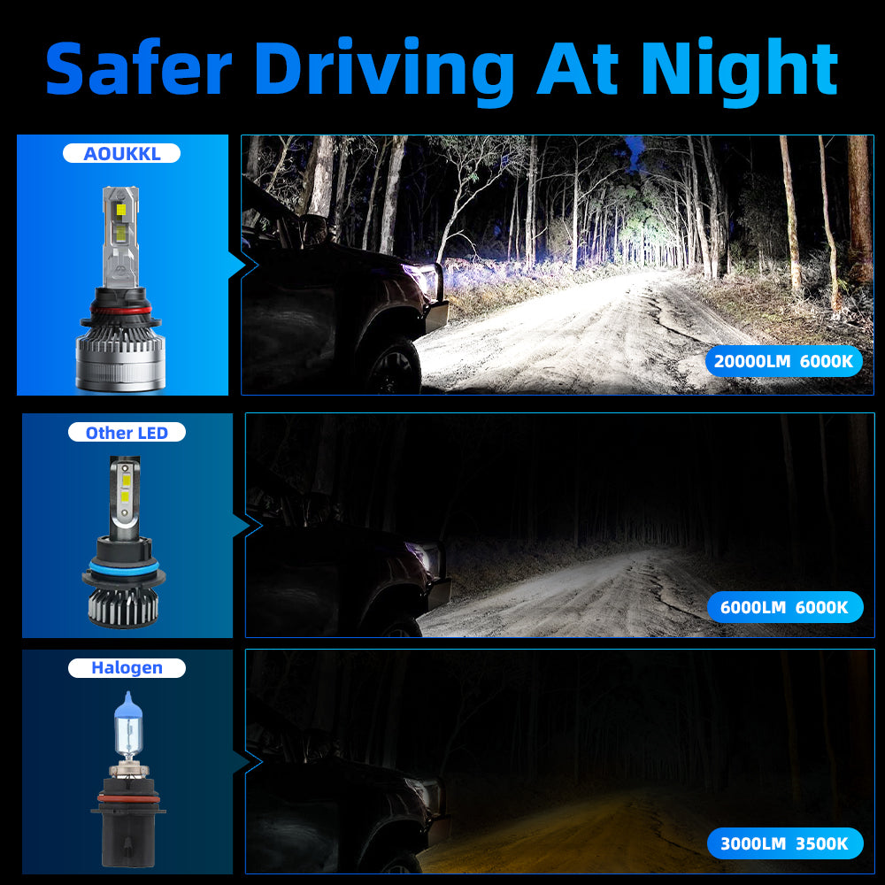 See Farther, Stay Safer – AOUKKL’s 50,000-lumen LED chips (6500K pure white) illuminate 2X farther than halogens, spotting hazards like deer or debris earlier.