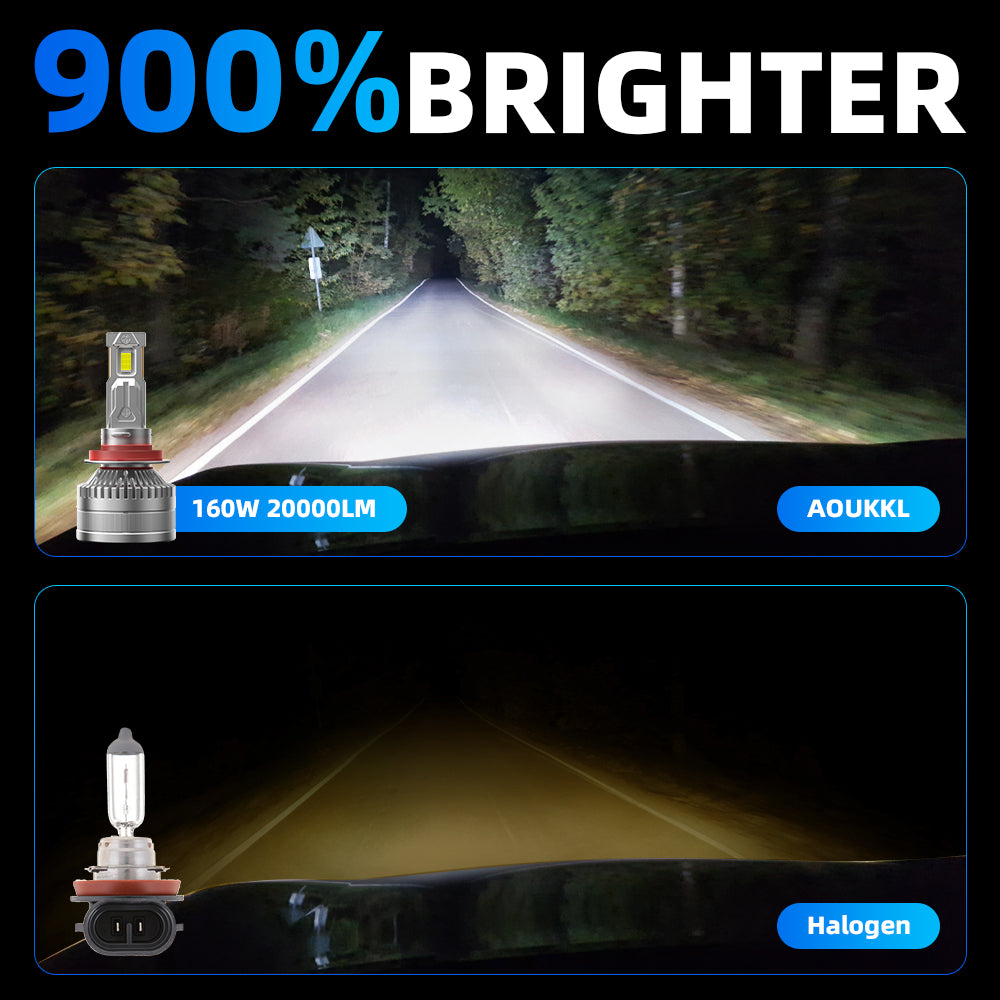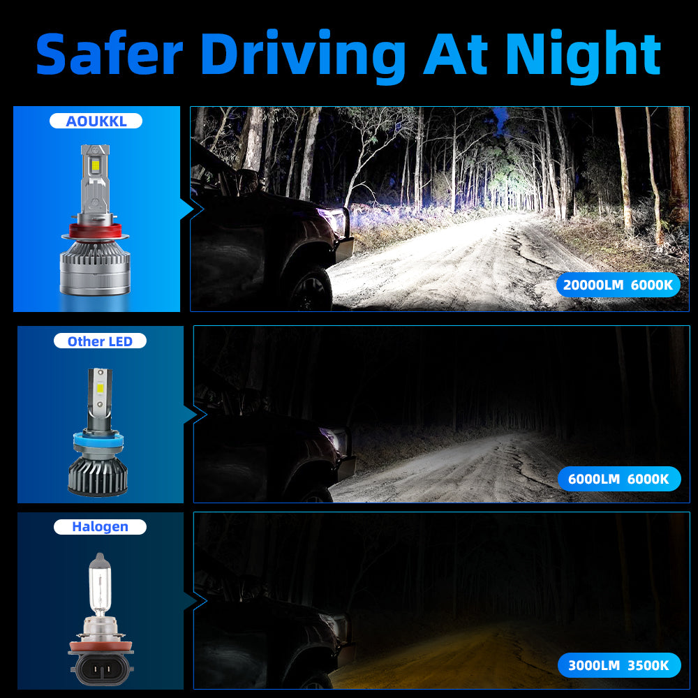 See Farther, Stay Safer – AOUKKL’s 50,000-lumen LED chips (6500K pure white) illuminate 2X farther than halogens, spotting hazards like deer or debris earlier.
